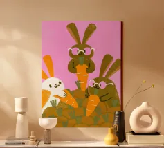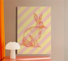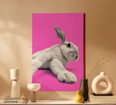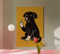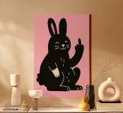 This cheeky poster with a cute illustrated black rabbit on a bright pink background provides maximum contrast between a sugary look and a clear message. The smiling bunny nonchalantly gives the middle finger - a tongue-in-cheek statement for anyone with a sense of humour, attitude and a weakness for ironic animal art. Perfect for offices, shared flats or creative spaces.