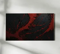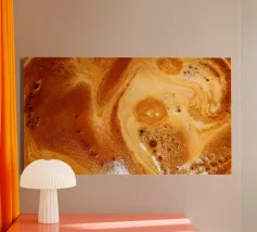 Fluid dynamics captured in orange and red layers canvas