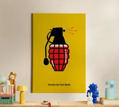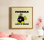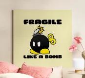 This design features a friendly toy bomb with yellow feet and a determined expression, accompanied by the phrase “Fragile as a bomb!”. An art that combines humor and creativity to illustrate the contrast between fragility and power, with a design inspired by the geek and nostalgic universe. Perfect for gamers, pop culture enthusiasts and anyone who appreciates humorous and impactful messages.