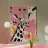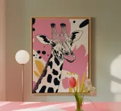 Giraffe Portrait with Abstract Pink Background