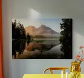 Transform your space with the serene beauty of nature brought to life in “Glowing Mist” by Daniel Gastager. This stunning framed canvas showcases a misty mountain landscape reflecting beautifully on tranquil waters. Perfect for adding a touch of calm and elegance to any room in your home, from your living space to your bedroom or office. The soothing colours and dreamy atmosphere make it ideal for relaxing environments or inspiring creative workspaces. Whether you’re a nature lover looking to connect with the great outdoors indoors or seeking the perfect gift for a friend, this piece will captivate and enchant. Quality craftsmanship ensures that this canvas will brighten your space for years to come. Make your walls speak volumes about your appreciation for art and nature!