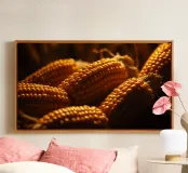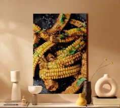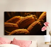 Golden corn ears displayed in a rustic setting canvas
