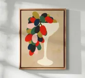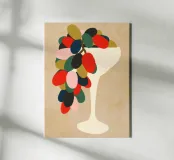 "Grape Array: Diversity in a Glass" features a vibrant collection of grapes nestled within a sleek wine glass, symbolizing harmony in diversity. This striking piece celebrates the beauty of variety and unity through nature's colorful bounty.