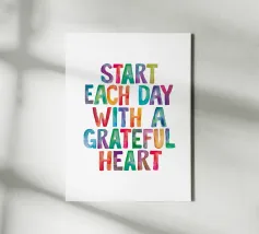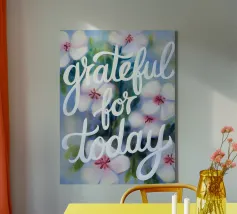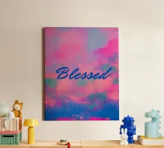 'Grateful' Colorful Abstract Print - Blue Text canvas