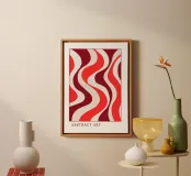Inject a dose of retro energy into your space with this captivating Abstract Art print. The design features bold, flowing wavy lines in a striking palette of deep burgundy, vibrant coral red, and creamy off-white. The organic, undulating rhythm of the stripes creates a mesmerizing sense of movement, reminiscent of 1970s psychedelic and Op Art aesthetics. This piece is a perfect focal point for a maximalist or Mid-Century Modern interior. Available as a superior digital art file (7000x5000 pixels, 300 dpi), this print guarantees exceptional color fidelity and sharpness for a truly stunning disp