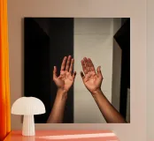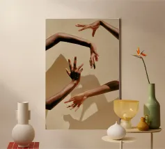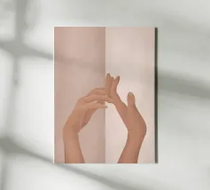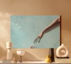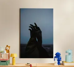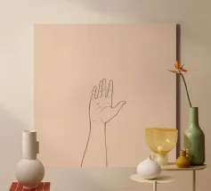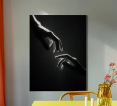 Hands reaching towards light in a minimalist setting canvas