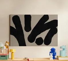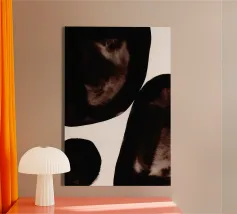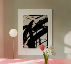 This expressive artwork combines powerful black brushstrokes with an airy, free composition. The sweeping movements convey dynamism, while the minimalist black and white style creates an elegant aesthetic. The mixture of abstract shapes and smooth transitions makes this painting the perfect choice for modern living spaces, offices and galleries. With its organic lines and expressive colour scheme, this work exudes calm, depth and artistic freedom. A work of art that serves as both a statement piece and a harmonious addition