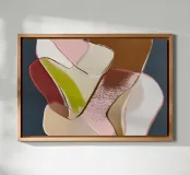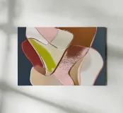 This work of art shows a harmonious interplay of organic colour surfaces in warm earth tones, delicate pastel colours and deep dark blue. The soft transitions and clear lines create a modern, abstract motif that radiates calm and elegance. Ideal as a contemporary wall decoration, it brings style and lightness to any room.