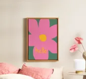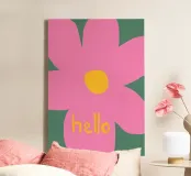 Brighten your space with this vibrant canvas art featuring a playful flower design and the word 'Hello'. Perfect for adding a cheerful touch to any room, this artwork is ideal for living rooms, bedrooms, or kids' areas.