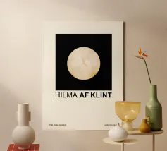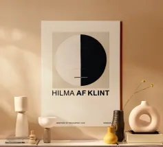 This striking art print features Hilma af Klint's abstract work from "The Swan Series," likely from 1915. The composition is set against a vibrant red background, dominated by two large, curling forms: one transitioning from white to black with an intricate central pattern, and another with a geometric, skeletal structure. This piece embodies themes of transformation, dualism, and spiritual exploration, characteristic of Klint's pioneering abstract art. The bold yet complex design makes it a captivating piece. This high-quality digital poster (7000x5000 pixels, 300 dpi) beautifully captures th