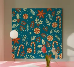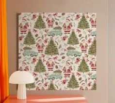 Playful “Ho Ho Ho” typography and iconic Christmas symbols come together in a vintage-inspired pattern full of energy and joy. Perfect for a punchy holiday statement.