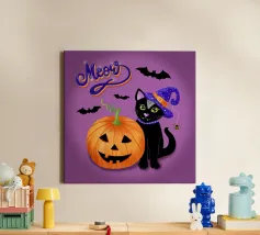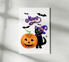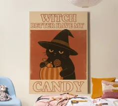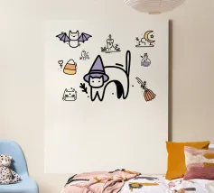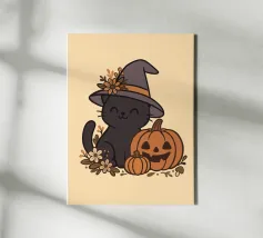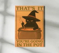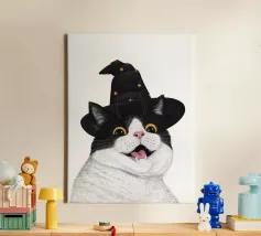 A black kitten wears a witch's hat and holds a wand that releases colorful magic. The phrase "Hocus Pocus I cannot focus" plays on the difficulty of maintaining attention, bringing humor and relatability to those living with ADHD or who feel constantly distracted. Ideal for fans of cats, magic, Halloween, and fun prints with a geeky and inclusive touch.