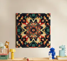 "Colourful geometric shapes, patterns and characters are floating in our world"