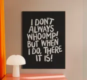 Bring a playful twist to your décor with this cheeky hand painted print featuring “I Don't Always Whoomp But When I Do There It Is” in bold white scrawled lettering on a deep black background. Perfect for music lovers, pop culture fans, or anyone who enjoys a witty statement piece, this eye-catching artwork adds humour and personality to any space. Ideal for gifting on birthdays, Christmas, or just because, it’s sure to spark conversation and make a memorable impression in any modern home or office.