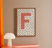 The playful design with the letter "F" in bright red on a black dot pattern is a stylish eye-catcher. Perfect for children's rooms, modern living spaces or as a gift idea with a personal touch. The clear typography combined with a Scandinavian-inspired pattern adds a charming accent to any room. Ideal for combining with other letters from the series.