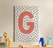The playful design with the letter "G" in bright red on a black dot pattern is a stylish eye-catcher. Perfect for children's rooms, modern living spaces or as a gift idea with a personal touch. The clear typography combined with a Scandinavian-inspired pattern adds a charming accent to any room. Ideal for combining with other letters from the series.