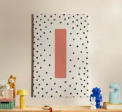 The playful design with the letter "I" in bright red on a black dot pattern is a stylish eye-catcher. Perfect for children's rooms, modern living spaces or as a gift idea with a personal touch. The clear typography combined with a Scandinavian-inspired pattern adds a charming accent to any room. Ideal for combining with other letters from the series.