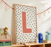 The playful design with the letter "L" in bright red on a black dot pattern is a stylish eye-catcher. Perfect for children's rooms, modern living spaces or as a gift idea with a personal touch. The clear typography combined with a Scandinavian-inspired pattern adds a charming accent to any room. Ideal for combining with other letters from the series.