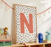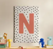 The playful design with the letter "N" in bright red on a black dot pattern is a stylish eye-catcher. Perfect for children's rooms, modern living spaces or as a gift idea with a personal touch. The clear typography combined with a Scandinavian-inspired pattern adds a charming accent to any room. Ideal for combining with other letters from the series.