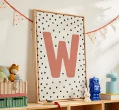 playful design with the letter "W" in bright red on a black dot pattern is a stylish eye-catcher. Perfect for children's rooms, modern living spaces or as a gift idea with a personal touch. The clear typography combined with a Scandinavian-inspired pattern adds a charming accent to any room. Ideal for combining with other letters from the series.