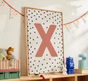 The playful design with the letter "X" in bright red on a black dot pattern is a stylish eye-catcher. Perfect for children's rooms, modern living spaces or as a gift idea with a personal touch. The clear typography combined with a Scandinavian-inspired pattern adds a charming accent to any room. Ideal for combining with other letters from the series.