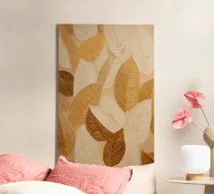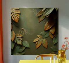 This artwork features a stunning display of autumn leaves elegantly intertwining with intricate swirling patterns, showcasing natural beauty and artistry.