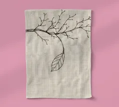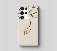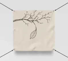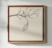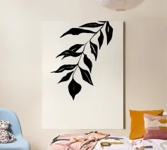 Intricately drawn branch with delicate twigs & single leafe canvas