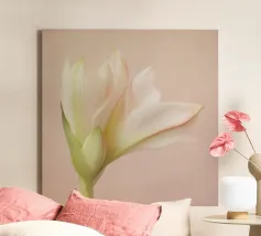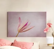 Enhance your home with this minimalist floral canvas art titled 'Introverted' by Visuelle Poesie am Wegesrand. Perfect for creating a calming atmosphere, this art piece features soft pink tones and delicate textures, making it an ideal choice for your living room or bedroom decor.