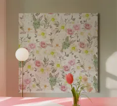 A light and lively floral repeat featuring soft greens, pale yellows, and crisp white blooms. The composition feels airy and rhythmic—like fresh garden clippings arranged on sunlit parchment.