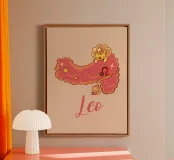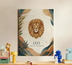Adorable and playful illustration of the Leo zodiac sign. This fluffy, colorful Leo, surrounded by stars and with a lively expression, captures the sign's warm and proud energy. Perfect for those who love astrology and are looking for a unique and fun touch to their space. Available on various home products and accessories