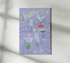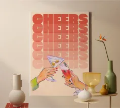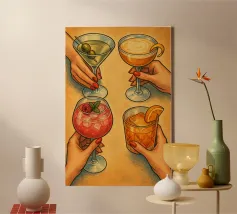 A lighthearted and whimsical design that celebrates the joy of unwinding with friends, featuring playful elements like clinking glasses and colorful accents. With a vibrant, upbeat color palette, this artwork exudes a fun, carefree energy—perfect for those who love to socialize and savor life's little moments. Ideal for bars, kitchens, home lounges, or as a gift for those who enjoy a good time with great company!