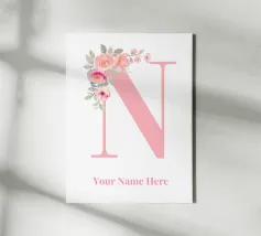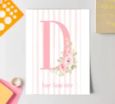 Letter D, Personalized Name Print, Personalized initial, Flowers