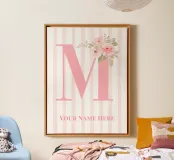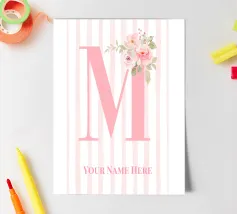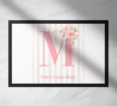 Letter M, Personalized Name Print, Personalized initial, Flowers