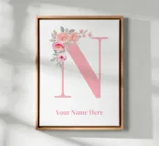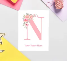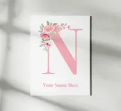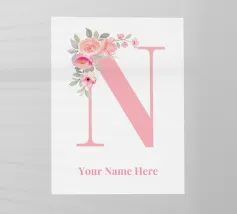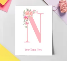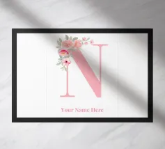 Letter N, Personalized Name Print, Personalized initial, Flowers
