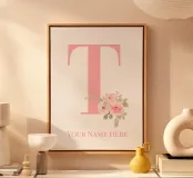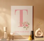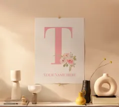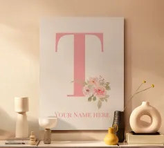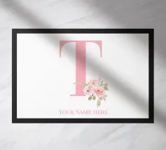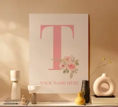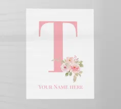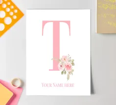 Letter T, Personalized Name Print, Personalized initial, Flowers