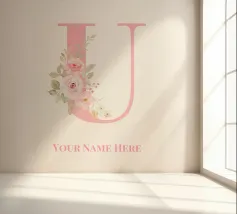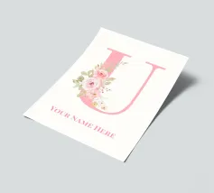 Letter U, Personalized Name Print, Personalized initial, Flowers