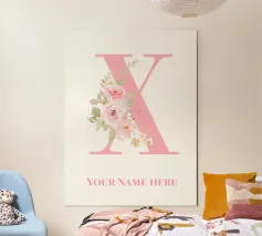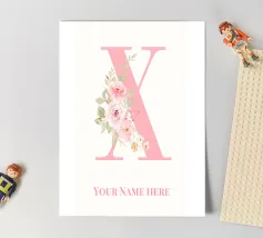 Letter X, Personalized Name Print, Personalized initial, Flowers