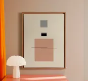 Cette illustration présente un design graphique minimaliste et géométrique. Cette affiche est composée de plusieurs cubes alignés au centre, en lévitation. C'est une illustration au design épuré, parfaite pour une décoration de salon au style contemporain et moderne.