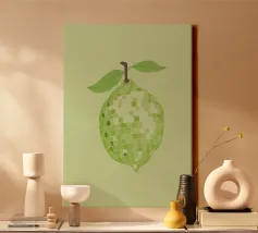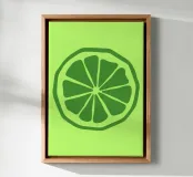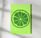 A stylized green lime slice with bold, clean lines stands out against a lighter green background. The simple design emphasizes the segments and rind of the lime.