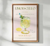 Set on a neutral, cream background, this elegant illustration of the famous Italian cocktail limoncello adds sophistication to any kitchen, cafe or dining area. This minimalist yet informative design will spark conversation in any setting, adding a refined touch to your environment.