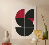 Enhance your living room or office with this Mid Century Modern canvas featuring bold geometric shapes in ruby red and black. Printed on high-quality, durable canvas with vibrant fade-resistant inks, it's a stylish statement piece blending vintage charm and contemporary minimalism. Ready to hang and ideal for modern home decor or unique gift ideas.