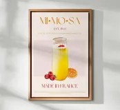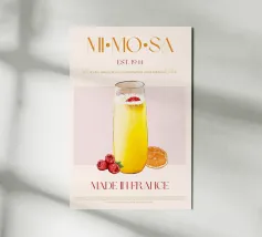 Set on a neutral, cream background, this elegant illustration of the famous mimosa cocktail adds sophistication to any kitchen, cafe or dining area. This minimalist yet informative design will spark conversation in any setting, adding a refined touch to your environment.