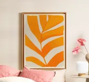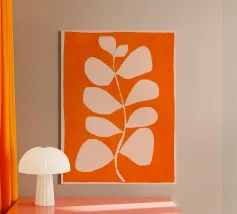 Minimal abstract leaf form in warm orange tones, bright and modern in style.
