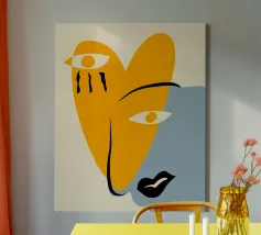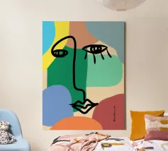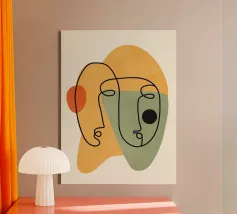 Minimal portrait of line and color canvas