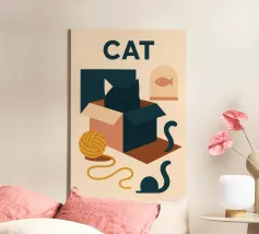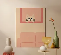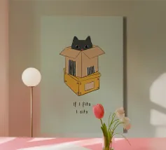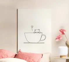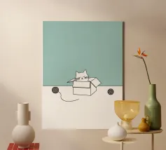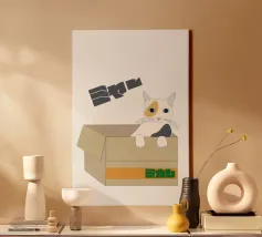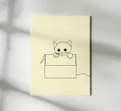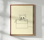 The playful charm of a cat in a box with this minimalist line drawing. A delightful piece of modern abstract art that adds whimsy and simplicity to any space.
