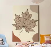 Minimalist Maple Leaf Poster in Neutral Tones with Abstract canvas