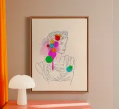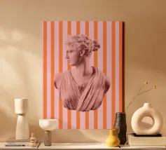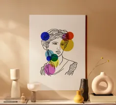 A contemporary reinterpretation of ancient beauty. This artwork features the silhouette of a Greek statue overlaid with minimalist, colorful geometry, breathing fresh life into classical antiquity. Perfect for lovers of history, art, and refined interiors.