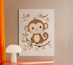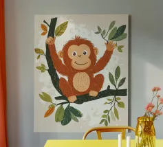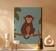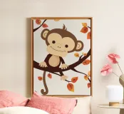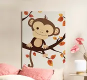 monkey sits on a tree branch surrounded by autumn leaves canvas