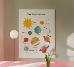 Explore the beauty of our solar system with this stunning canvas print titled "Moons" by LeDieg. Featuring vibrant and detailed representations of various moons, this artwork is perfect for anyone fascinated by astronomy or looking to enhance their living space with a cosmic theme. This piece is not only a visual delight but also a conversation starter on planetary science and celestial wonders. Ideal for a bedroom, study, or living room, it suits both modern and eclectic styles. The perfect gift for space enthusiasts or anyone who appreciates unique artwork. Crafted for durability and easy hanging, it will elevate any room with its stunning colours and intriguing design.