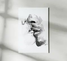 Larissa van der Laan is a scientist and artist who creates work inspired by her travels, which informs the methods she uses and the images she chooses to create. She draws on her background as a glaciologist and all-round adventurer to depict landscapes, and her skills as a painter and illustrator to use geometry and watercolours as a method of creating sensuality and intimacy. Her figurative work, which often includes human bodies at close quarters, uses colour and shading to emphasise the physicality of her subjects. Larissa van der Laan lives and works in the Netherlands.